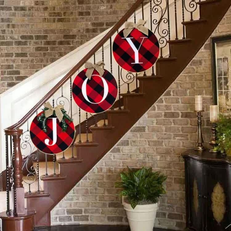 Christmas Decorations Home Windows And Doors Staircase Scene Layout DIY Red And Black Grid Christmas Wreath