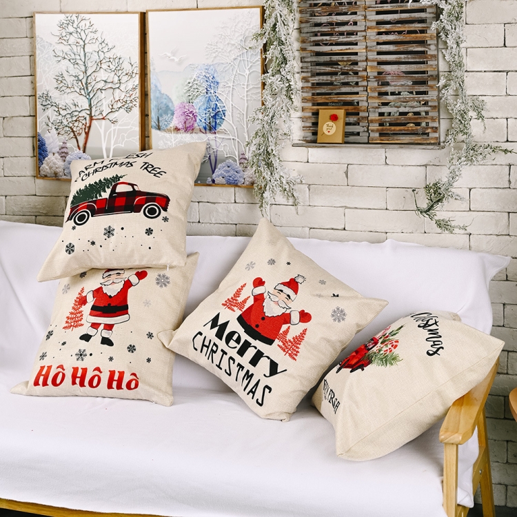 Christmas Decorations Linen Pillowcases Square Pillowcases Without Pillow Core, Red and Black Car, Santa Claus, HOHO Santa Claus, Red Car