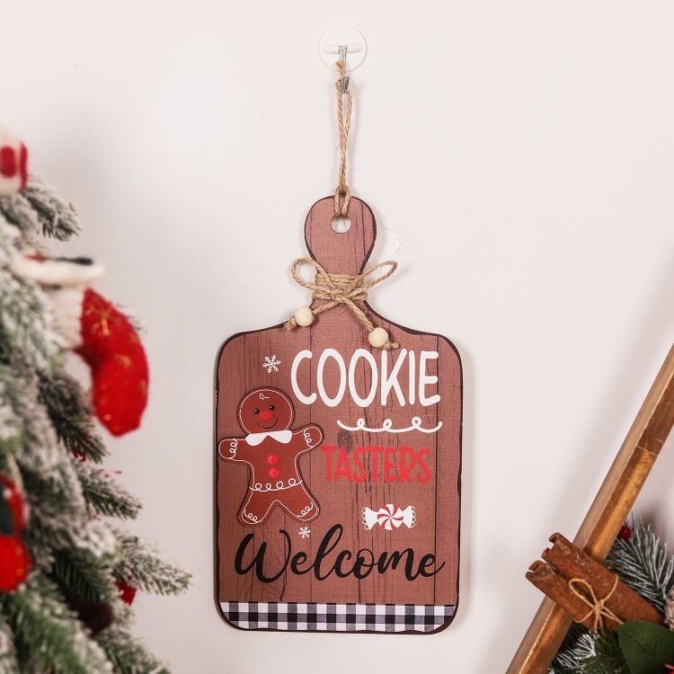 Christmas Gingerbread Man Decoration Wooden Sign Ornaments Store Welcome Pendant