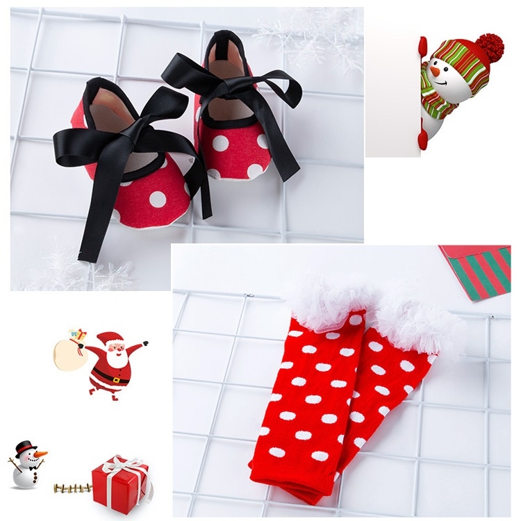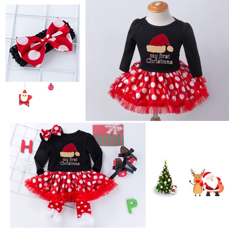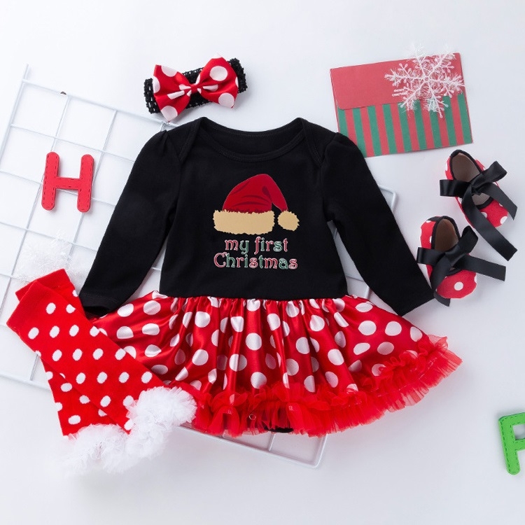 Christmas High Quality Cotton Circle Dot Long Sleeve Dress Four-piece Girl Suit (Color:Christmas Stocking Size:80)