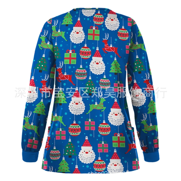 Christmas Long-sleeved Stand-up Collar Single-breasted Printed Protective Work Clothes (Color:Dark Blue Size:XXL)