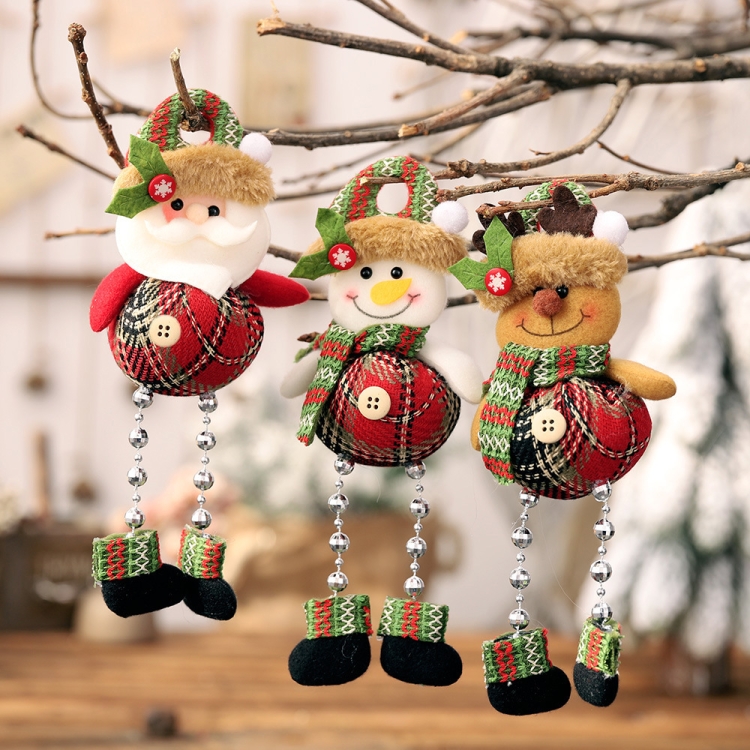 Christmas Plaid Cloth Beads Leg Pendants Christmas Window Decoration Cartoon Small Doll Ornaments
