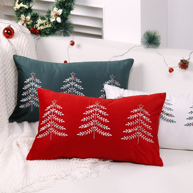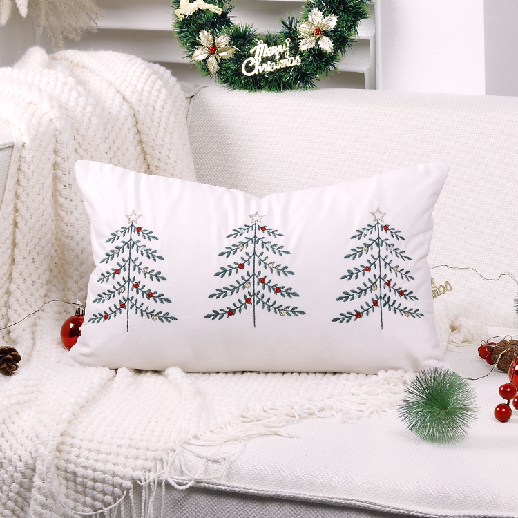 Christmas Tree Embroidery Pillowcase Holiday Decoration Cushion Cover, Pillow Core Not Included