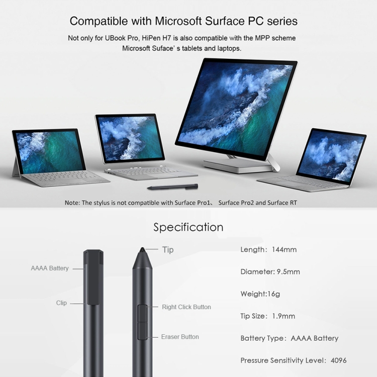 CHUWI HiPen H7 4096 Pressure Levels Sensitivity Metal Body Stylus Pen for Surpad / UBOOK X / Ubook Pro / New UBOOK / New Hi10 X / Hi10 XR / Hi10 Go (WMC0436, WMC0389, WMC0273, WMC0372, WMC0374, WMC7273, WMC0409, WMC1410)