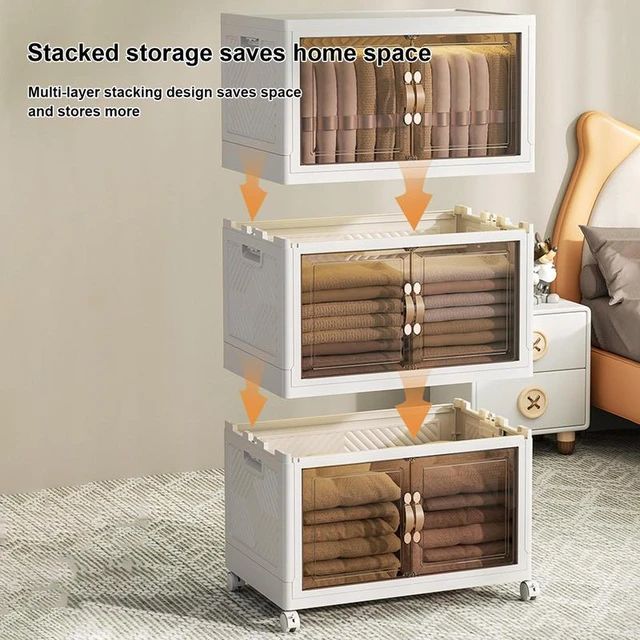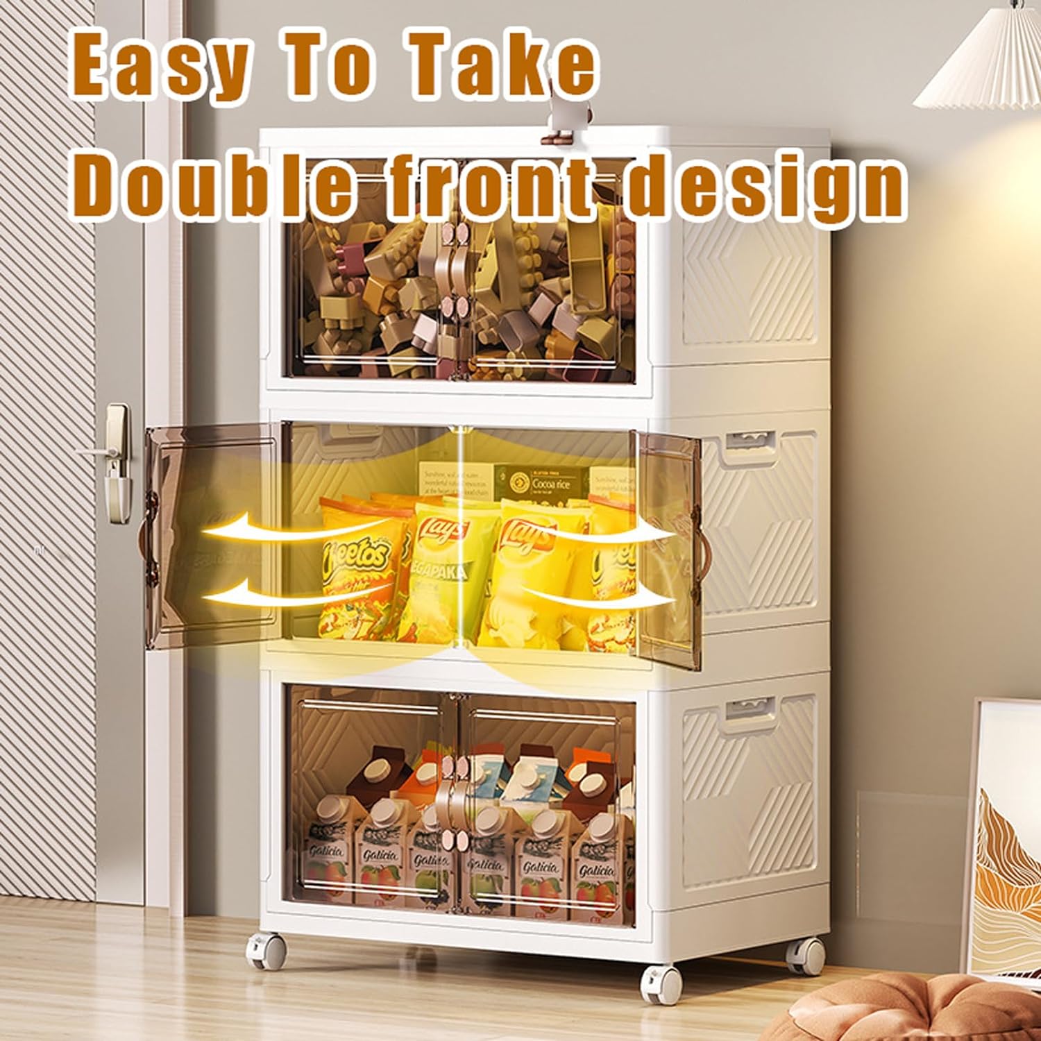 Closet Organizers and Storage Bins with Lids and Wheels,Plastic Foldable Box Toy Storage Containers for Home Kitchen Office