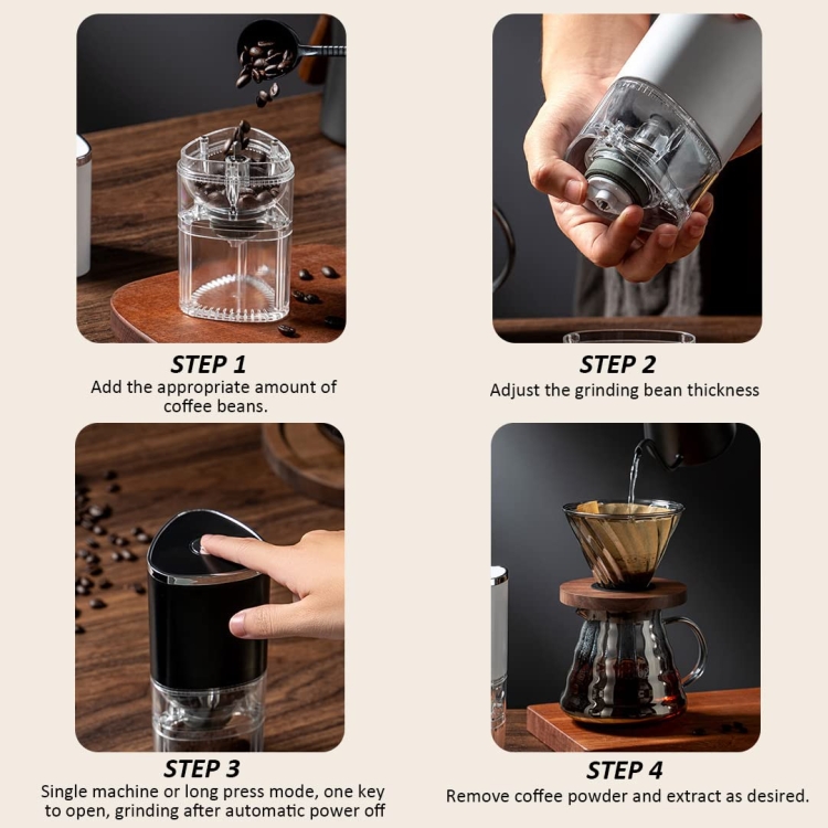 1. Easy to use, just place the lid on the grinder and press the button to grind coffee. Release to stop grinding.
