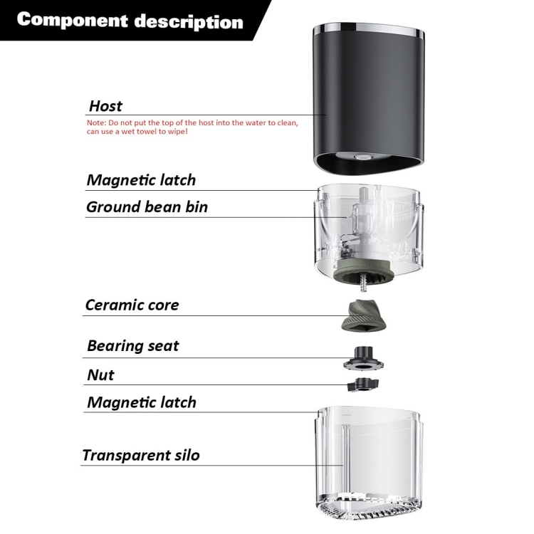 4. Ceramic cone-shaped burrs: generate less heat during grinding and retain more coffee aroma. Ceramic burrs can be cleaned with water, will not rust or oxidize, are easy to disassemble and cheap to replace.