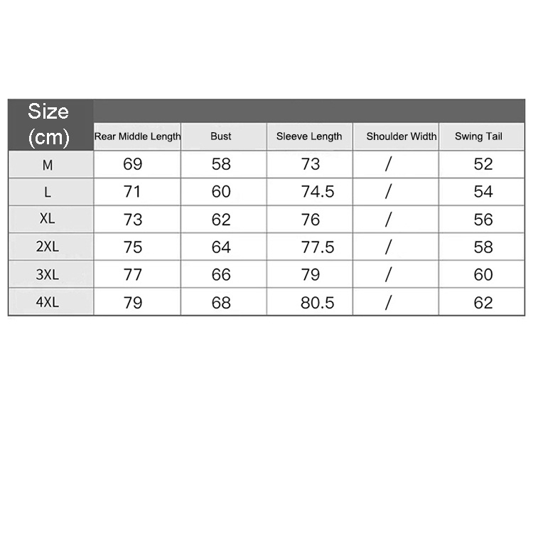 | Size | M, L, XL, XXL, XXXL, XXXXL |