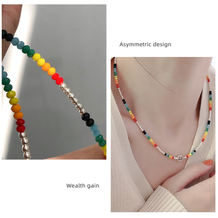 Colorful Beaded Smiley Necklace Womens Clavicle Chain