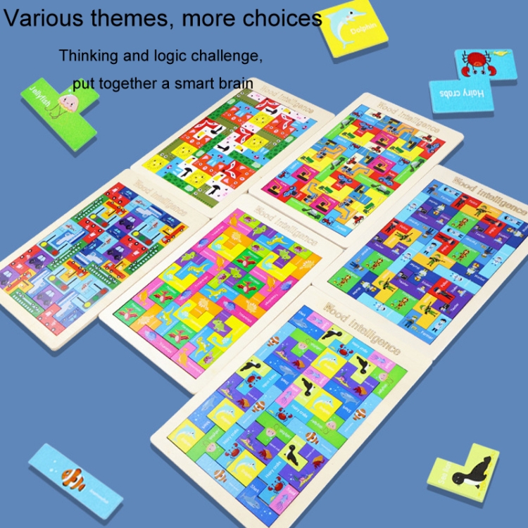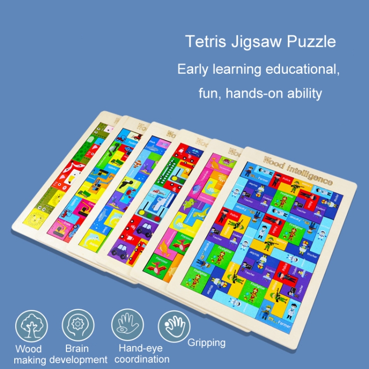 Colorful Cartoon Patterns Blocks Wooden Puzzle Children Educational Toy