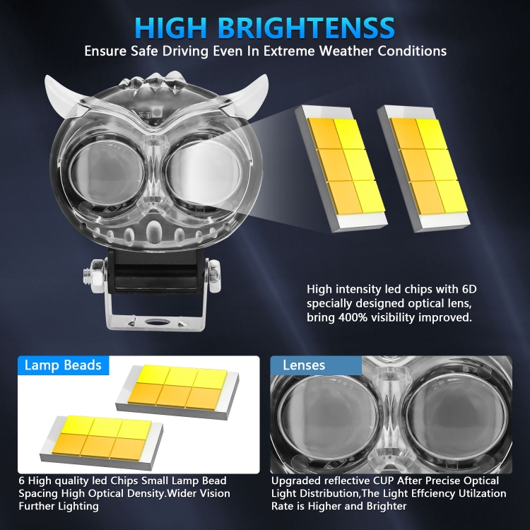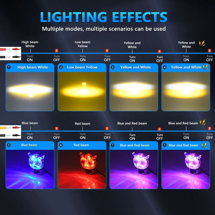 1. Make your night brighter: The LED light is equipped with six 10-watt high-intensity ZES-3570 LED chips. The color temperature of the strong light is 6000K white light, 4500K warm yellow light and 3000K amber light, making your driving more comfortable. The new model has multiple modes to choose from, and you can switch modes at will to cope with different driving environments.