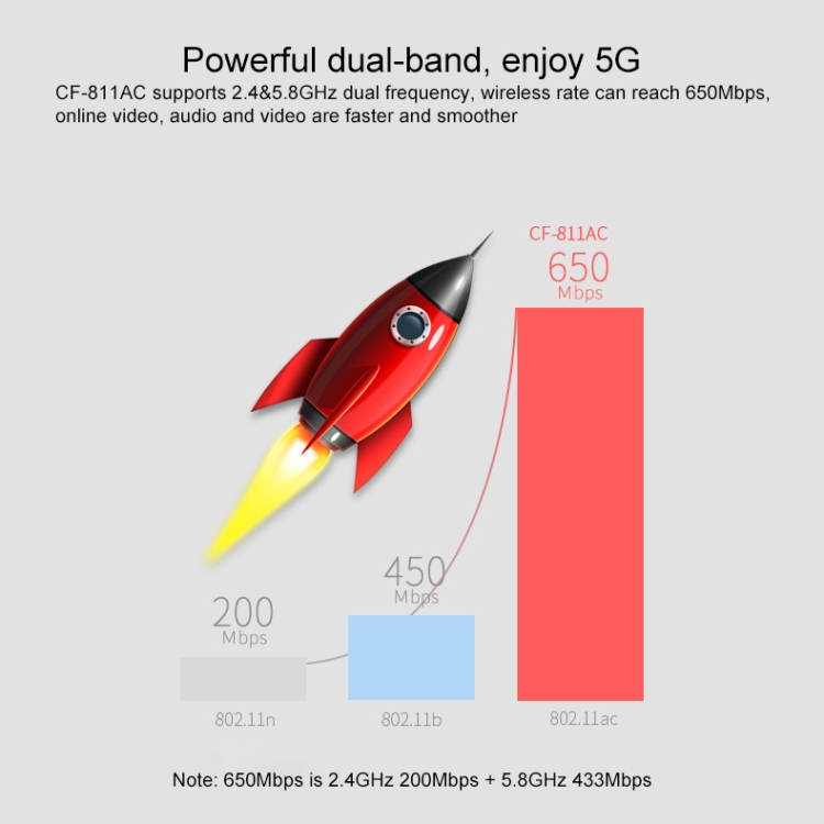 2. Support 2.4/5.8G dual frequency, total rate up to 350M