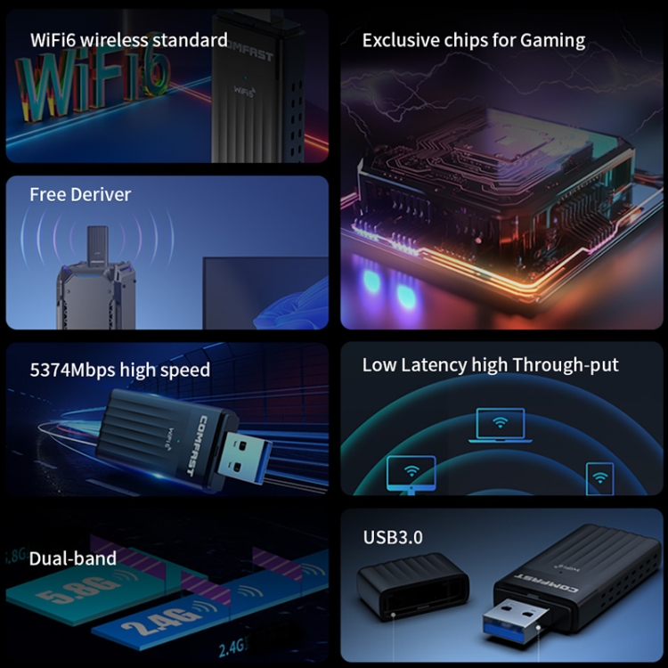 COMFAST CF-970AX 3000Mbps Dual Band Wireless Network Card WiFi6 USB Adapter