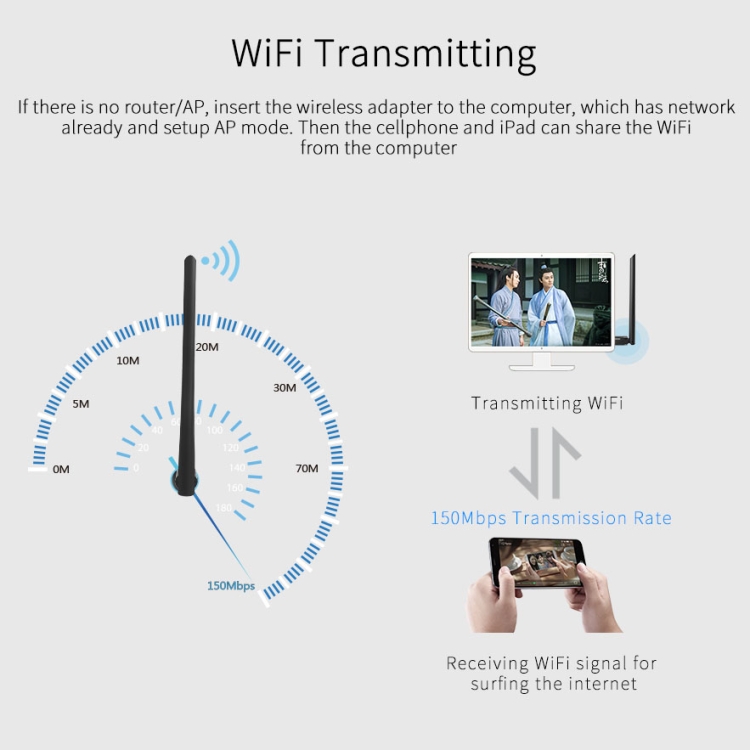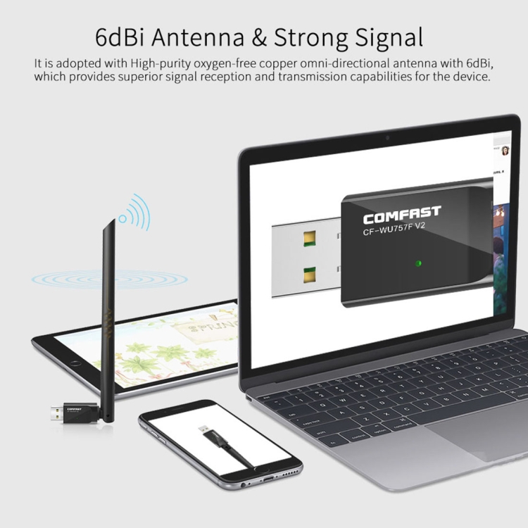COMFAST CF-WU757F 150Mbps Wireless USB 2.0 Free Driver WiFi Adapter External Network Card with 6dBi External Antenna