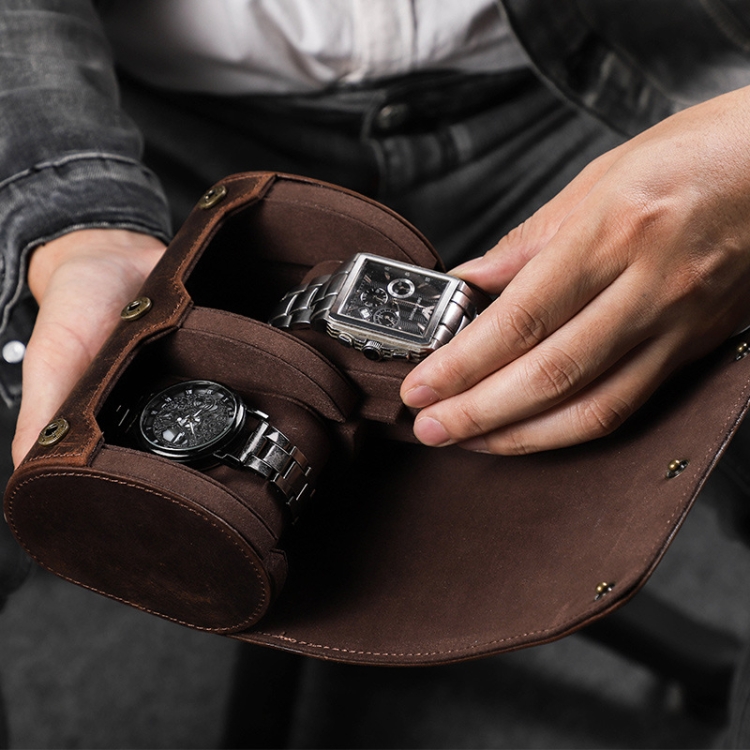 CONTACTS FAMILY Vintage Crazy Horse Leather Portable Outdoor Watch Case