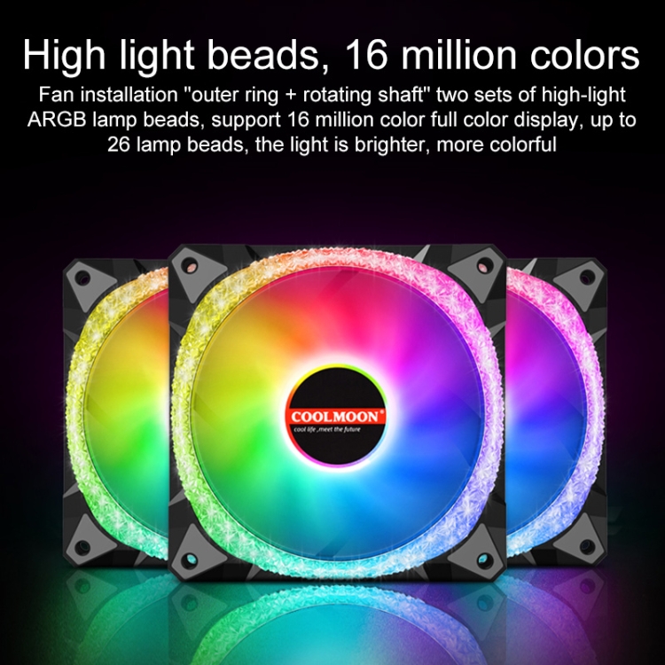 COOLMOON AS2 PWM Controlled Cooling Fan 12CM Dual-aperture Computer Water Cooling ARGB Chassis Fan