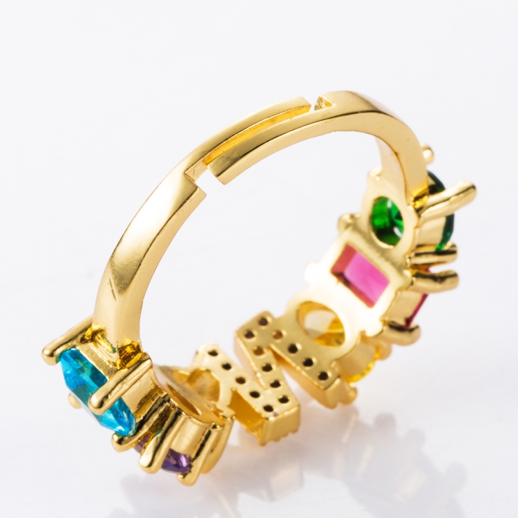Copper 18K Micro Inlaid Zircon English Letter Ring Hip Hop Style Open Ring