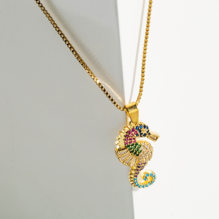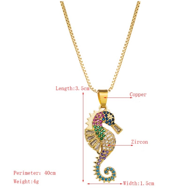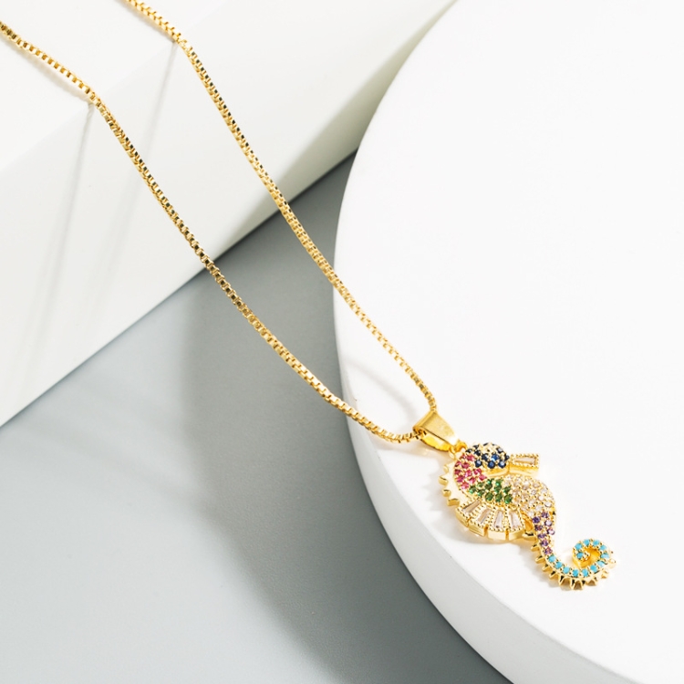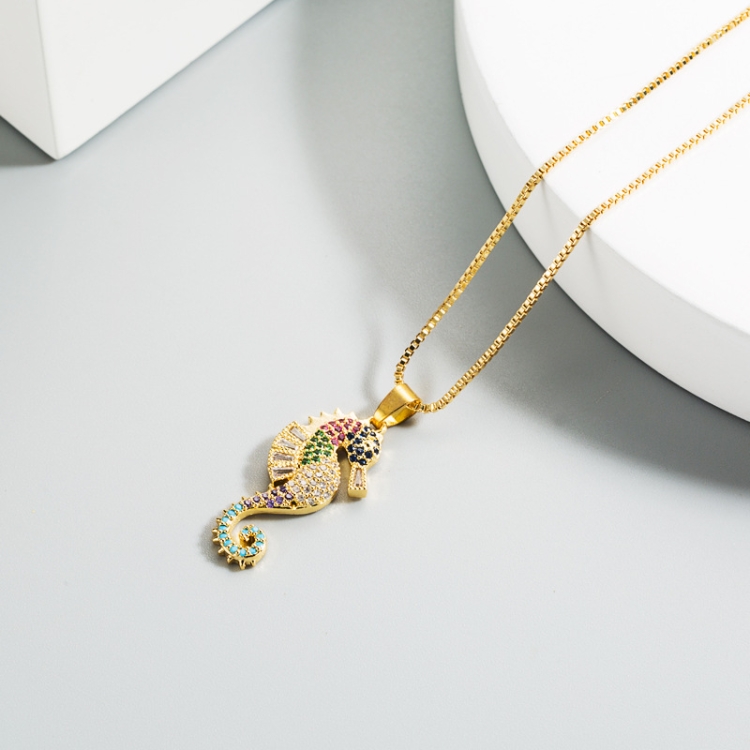Copper Inlaid Colorful Zircon Seahorse Pendant Necklace Personality Clavicle Chain