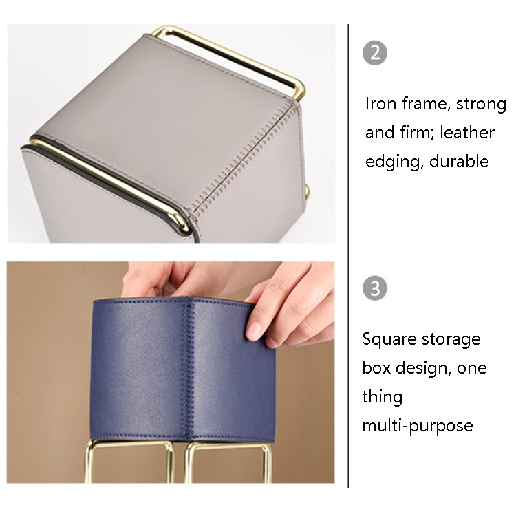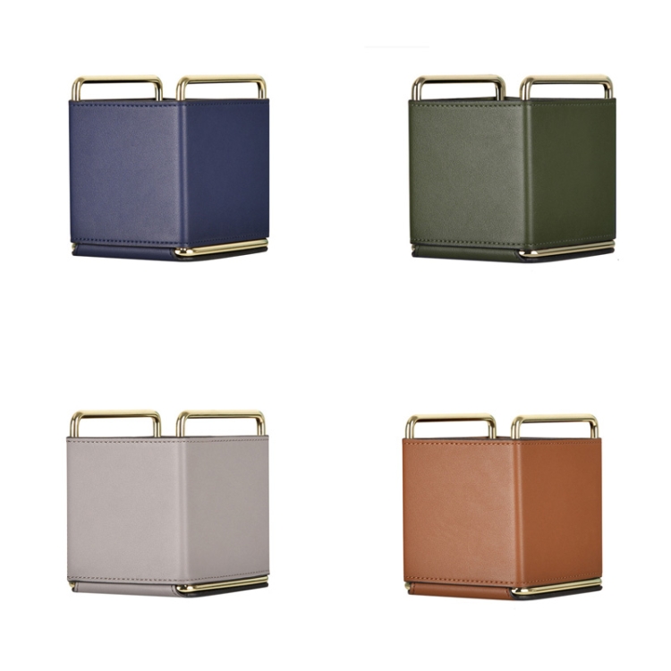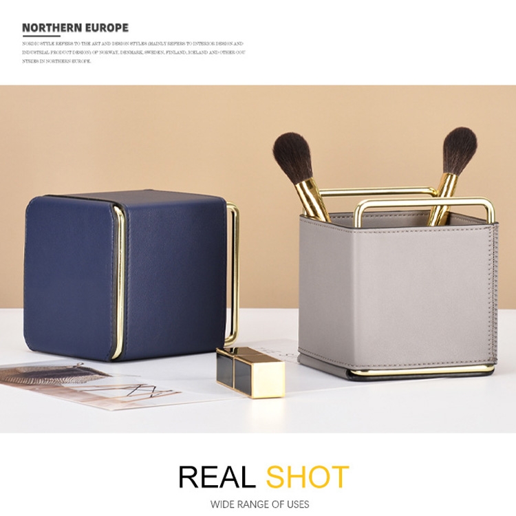 Cortical Makeup Brush Storage Bucket Barrel Desktop Leather Pen Barrel, Royal Blue, Ink Green, Light Grey, Brown