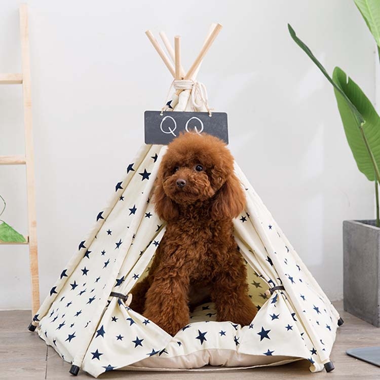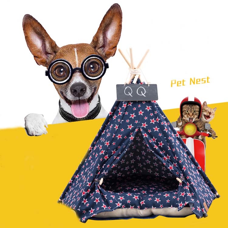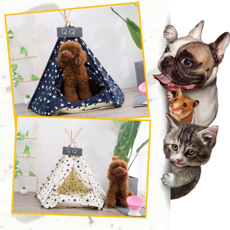 Cotton Canvas Pet Tent Cat and Dog Bed with Cushion