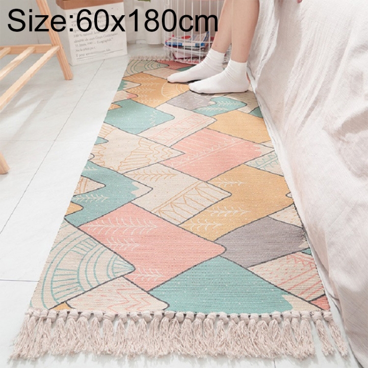 Cotton Hand-woven Bedside Carpet Home Long Fringed Anti-slip Mat