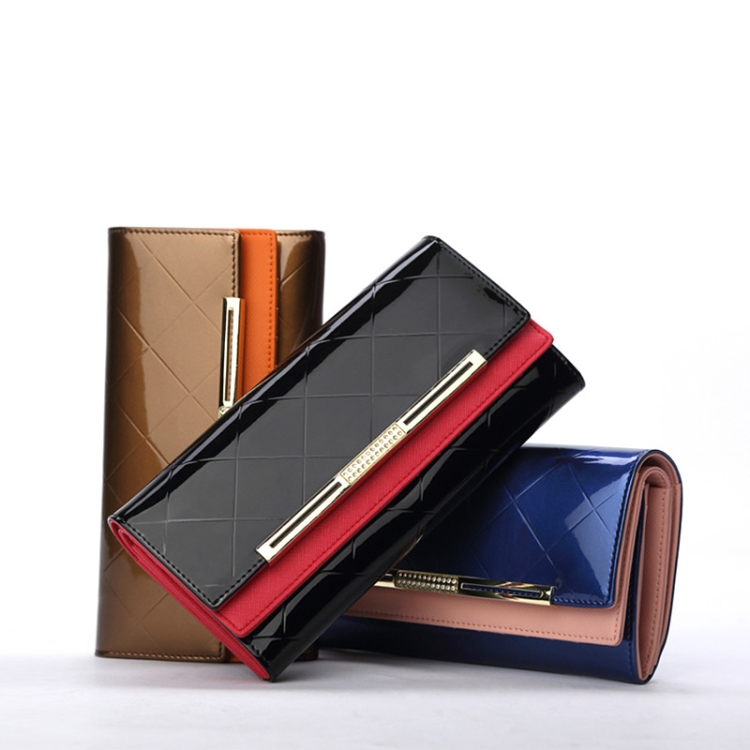 Cowhide Leather Wallet Luxury Design Ladies Party Clutch Patent Leather Purses Long Card Holder