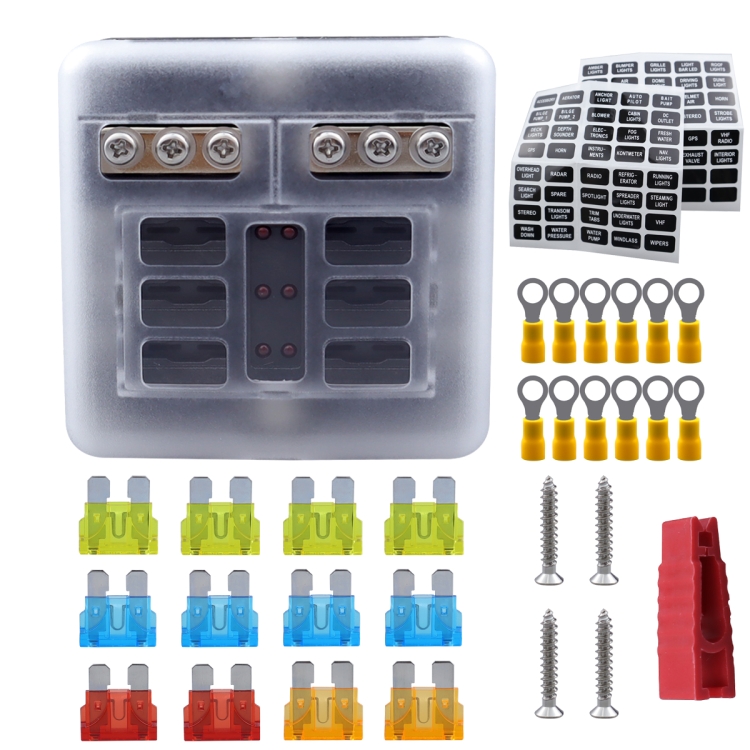 CP-4040 6 Way Fuse Block with 12pcs Fuses and 12pcs Terminals