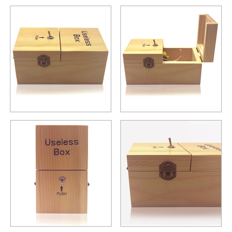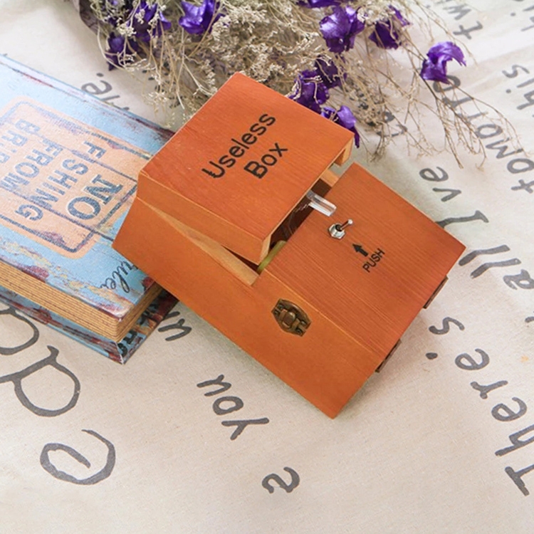 Creative Funny Present Useless Box Novel Wooden Anti-stress Toy(Dark Wood)