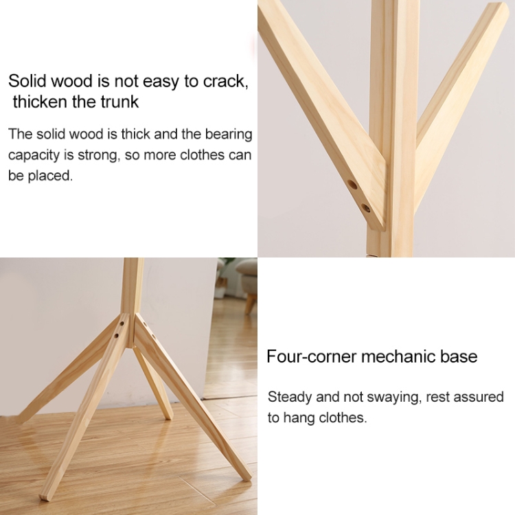 Creative Tree-shaped Solid Wood Floor Hatstand Clothes Hanging Rack,Size: 175x45x45cm