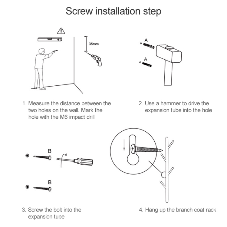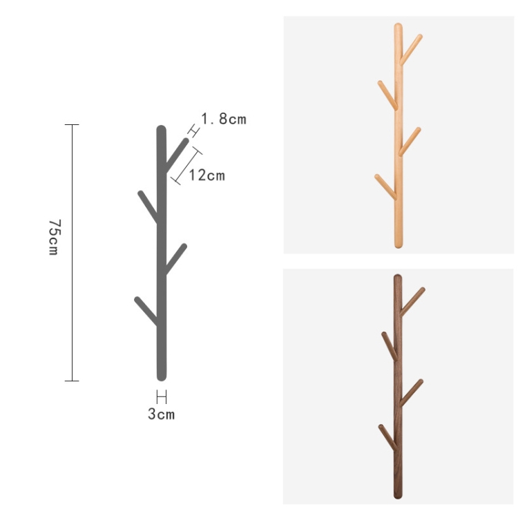 Creative Tree-shaped Solid Wood Hatstand Clothes Hanging Rack,Size: 75x3cm, Black Walnut