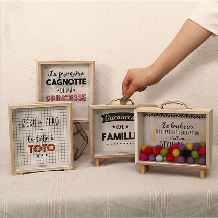 Creative Wooden Art Fresh Piggy Bank Bedroom Desktop Decoration Ornaments Sundries Storage Box