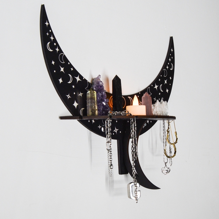 Crescent-shaped Wooden Storage Rack Wall Hanger Candlestick Rack Home Decoration