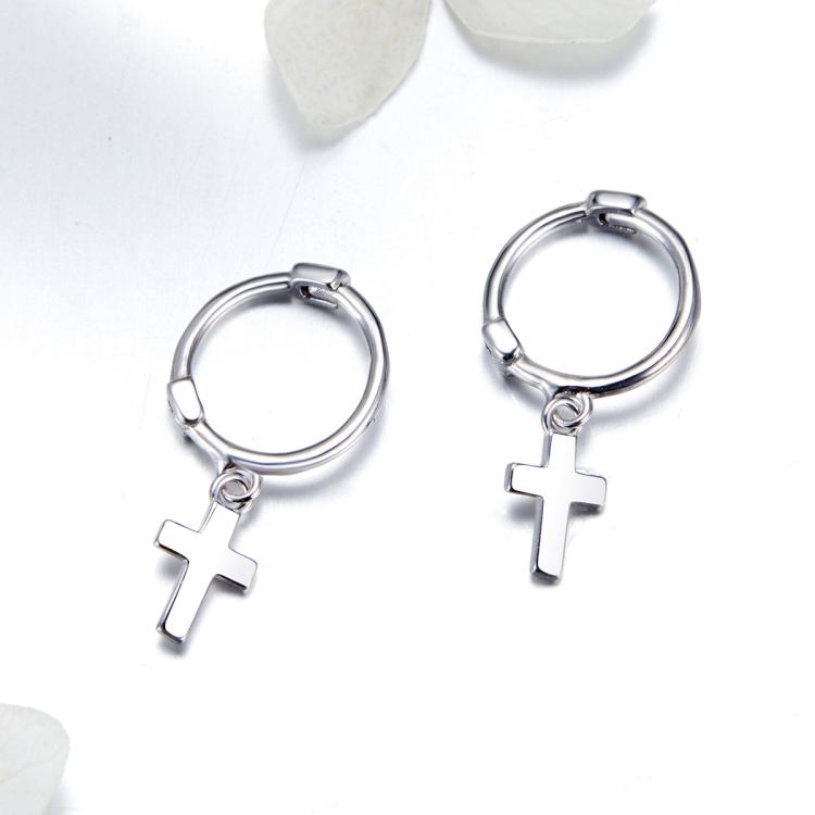 Cross Earrings S925 Sterling Silver Platinum-plated Earrings Men Women Simple Earrings