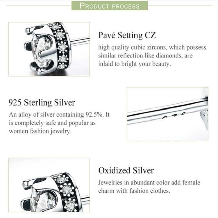 Crown S925 Sterling Silver Women Earrings With Zircon Earrings