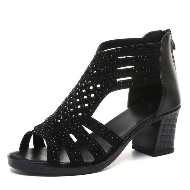 Crystal Hollow Out Peep Toe Wedges Sandals