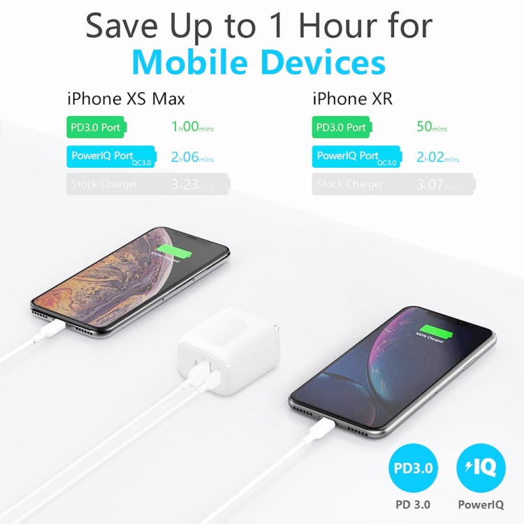4. Pd3.0 output 20W: DC5V / 3a, dc9v / 2.25A, DC12V / 1.65A