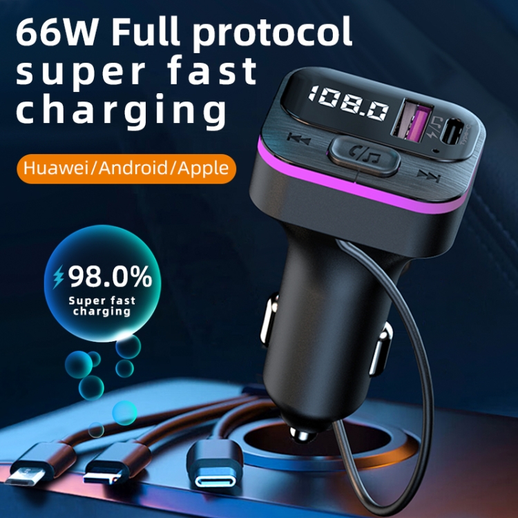 CS3 With 3 Charging Cables 66W Car Charger MP3 Player Bluetooth FM Transmitter