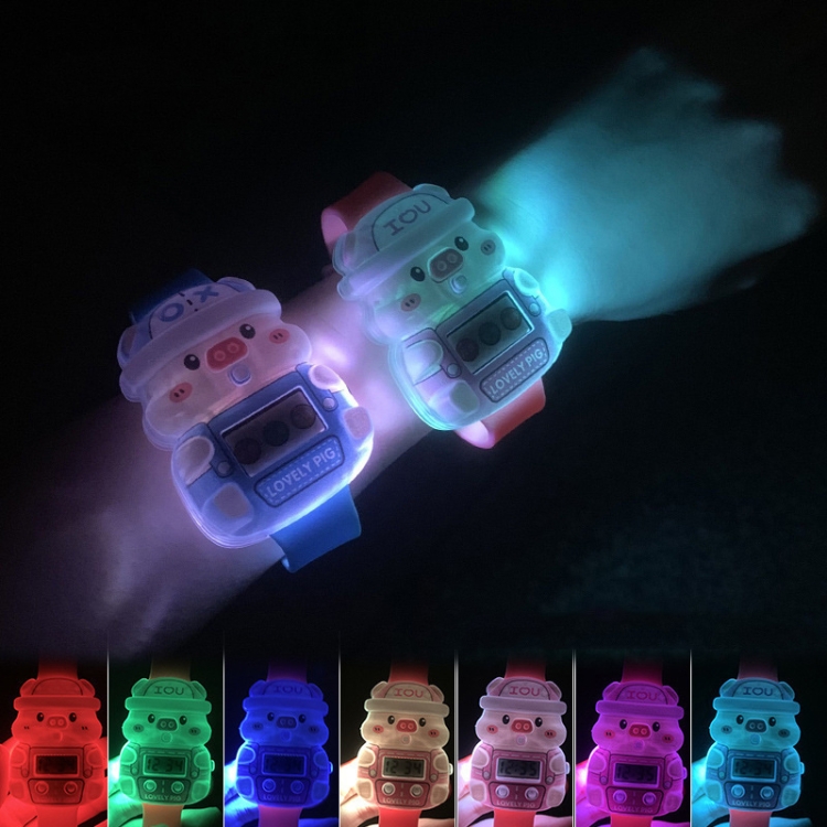 Cute Cartoon Piggy Children Electronic Watch Colorful LED Toy Music Watch Gifts