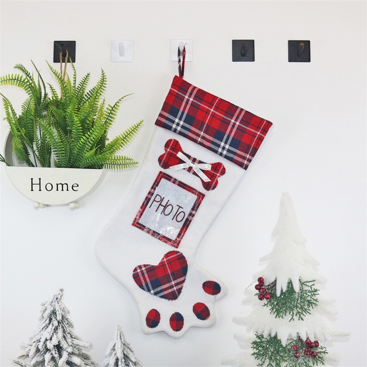 CX20203 Creative Dog Paw Christmas Sock Gift Bag Christmas Tree Pendant Decoration