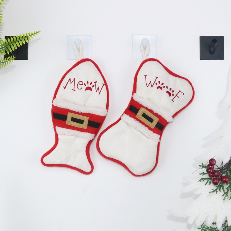 CX20223 Multi-function Bone Shape Christmas Sock Gift Bag Knife Fork Sleeve Christmas Tree Pendant Decoration