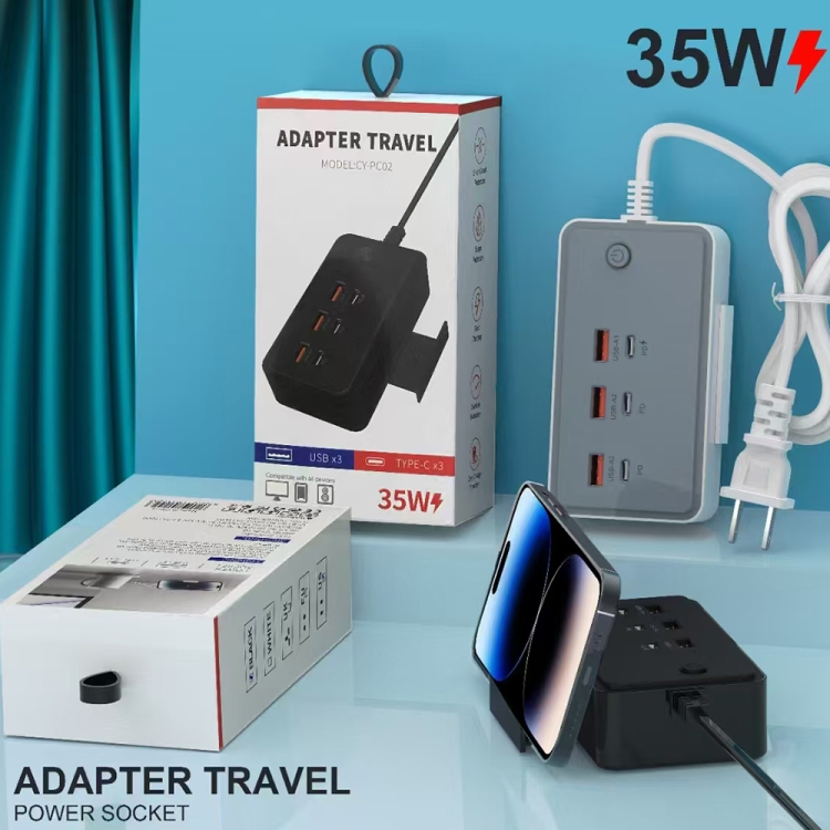 CY-PC02 35W 6-Port Multifunctional Desktop Charger with Holder