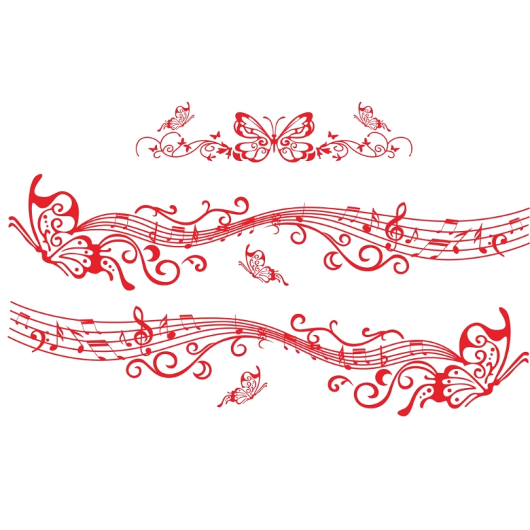 D-347 Butterfly Note Car Sticker Sheet Music Waist Line Body Sticker