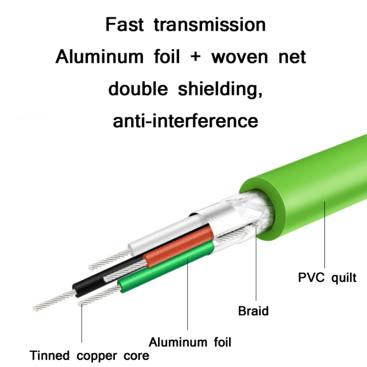 7. Fast transmission, aluminum foil + woven net double shielding, anti-interference