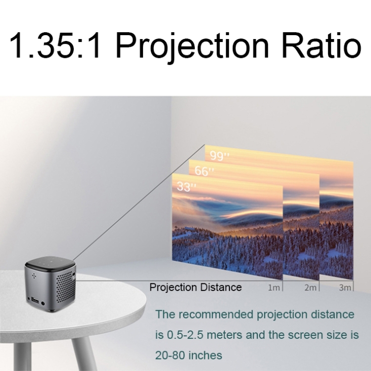 11. The recommended projection distance is 0.5-2.5 meters and the screen size is 20-80 inches