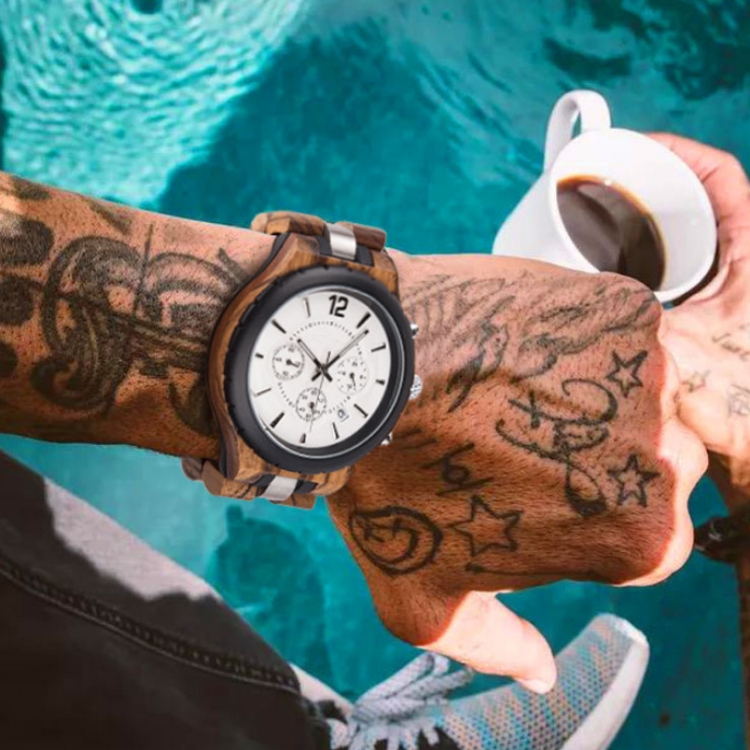 D21 Men Wooden Strap Stainless Steel Luminous Waterproof Watch