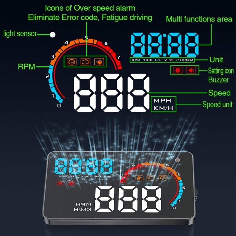 D2500 OBD2+GPS 4 inch Vehicle-mounted Head Up Display Security System, Support Car Speed / Engine Revolving Speed Display / Water Temperature / Battery Voltage / Running Speed & Direction & Distance