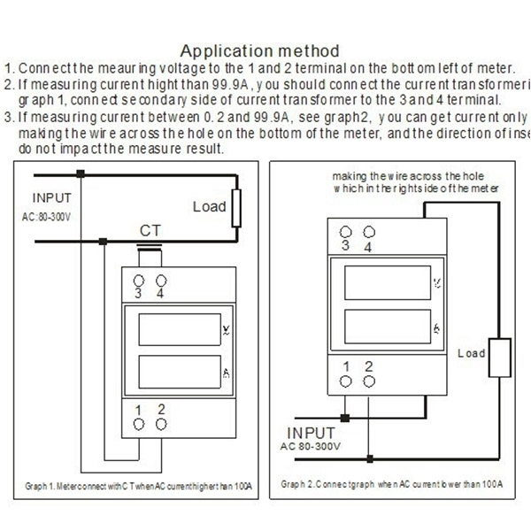 4. Alternating current: AC 0.2-99.9A (If the current is more than 100A, another mutual inductor is needed.) Please give clear indication when you order the product.