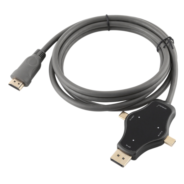 D65A 1.8m DisplayPort In & Mini DP In & USB-C / Type-C In to HDMI 4K Output Video Adapter Cable