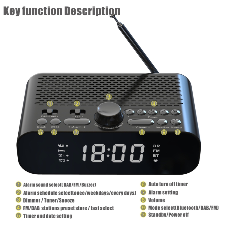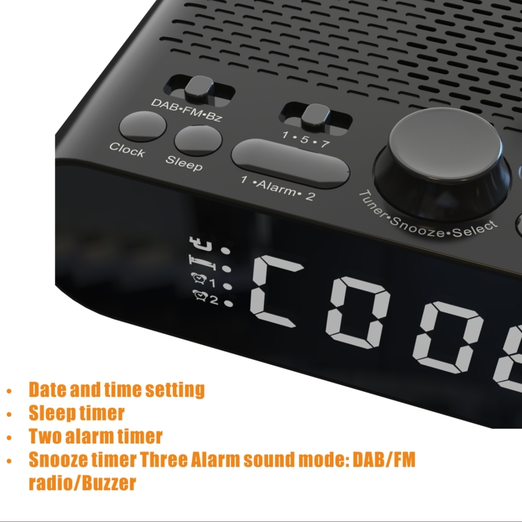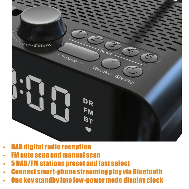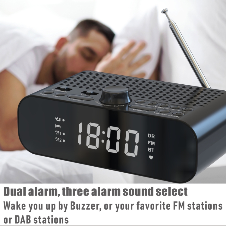 DAB-A5 LED Display Bedside DAB/FM Clock Radio with Bluetooth Speaker,