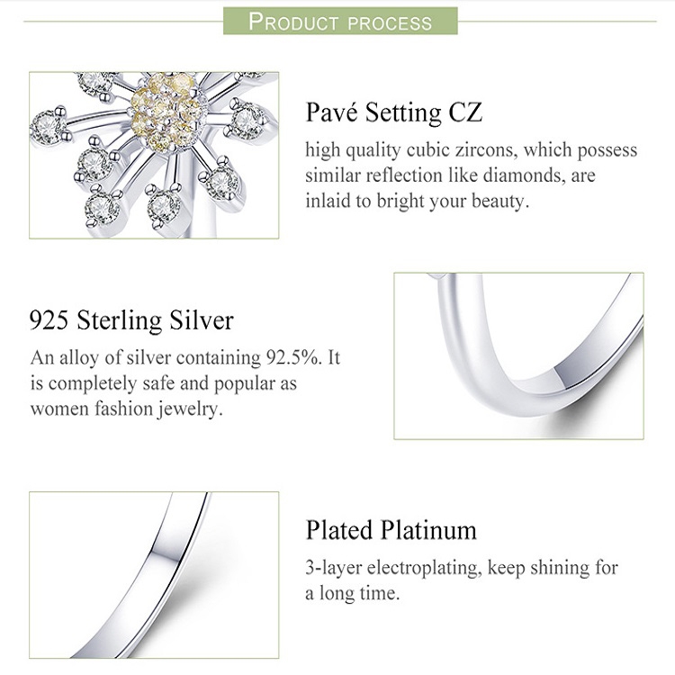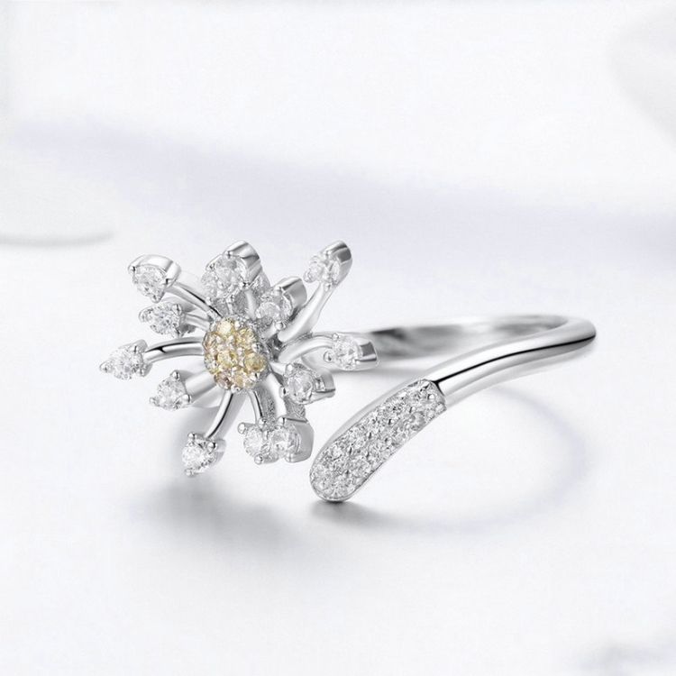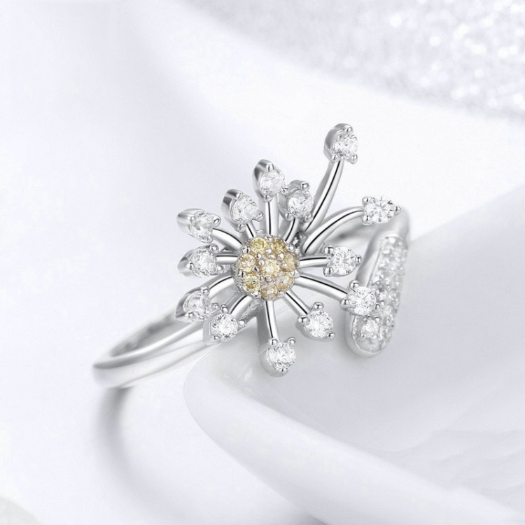 Dandelion Love Inlaid Zircon Ring S925 Sterling Silver Lady Ring